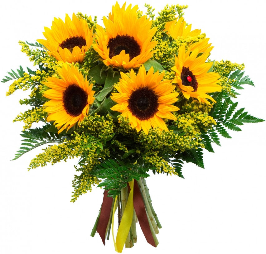 Среди огромного разнообразия прекрасных декоративных растений подсолнух - это самый жизнерадостный цветок, он всей своей сущностью тянется к свету, вбирает его в себя, а потом делится этим светом с нами, наполняя наши души жизнелюбием, оптимизмом и радостью. Порадуйте своих близких этим прекрасным букетом подсолнухов.